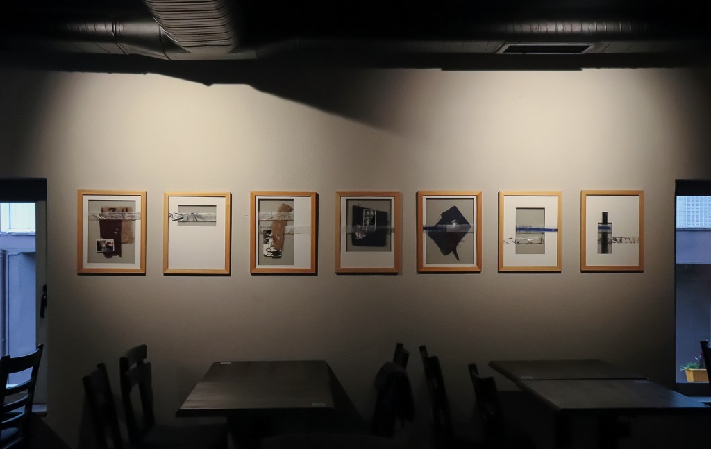 Vesile is a series of assemblages made with found objects and sheets of upcycled plastic waste obtained from Demos. These objects include leftover materials from artists’ previous projects, wooden frames, photographs collected from second-hand bookstores, strips of negatives from personal archives and fabric scraps.
